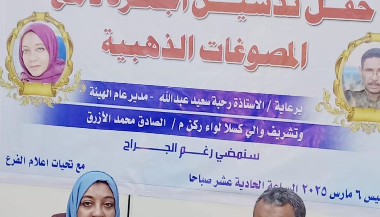شهدت ولاية كسلا اليوم تدشين أجهزة دمغ المصوغات الذهبية، في احتفال نظمته الهيئة السودانية للمواصفات والمقاييس تحت شعار “سنمضي رغم الجراح”، بحضور نائب والي كسلا ووزير التنمية الاجتماعية المكلف، الأستاذ عمر عثمان آدم، إلى جانب القيادات الشرطية والأمنية والجمارك وممثلي اتحاد الصاغة بالولاية.
